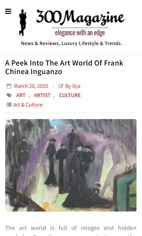 300Magazine — "A Peek into the Art World of Frank Chinea Inguanzo" — profile and commentary on his artistic vision and practice
